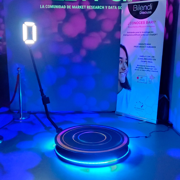 Ofrecemos una plataforma 360 que permite a tus invitados capturar videos dinámicos y envolventes. Ideal para crear recuerdos únicos en bodas y eventos especiales.