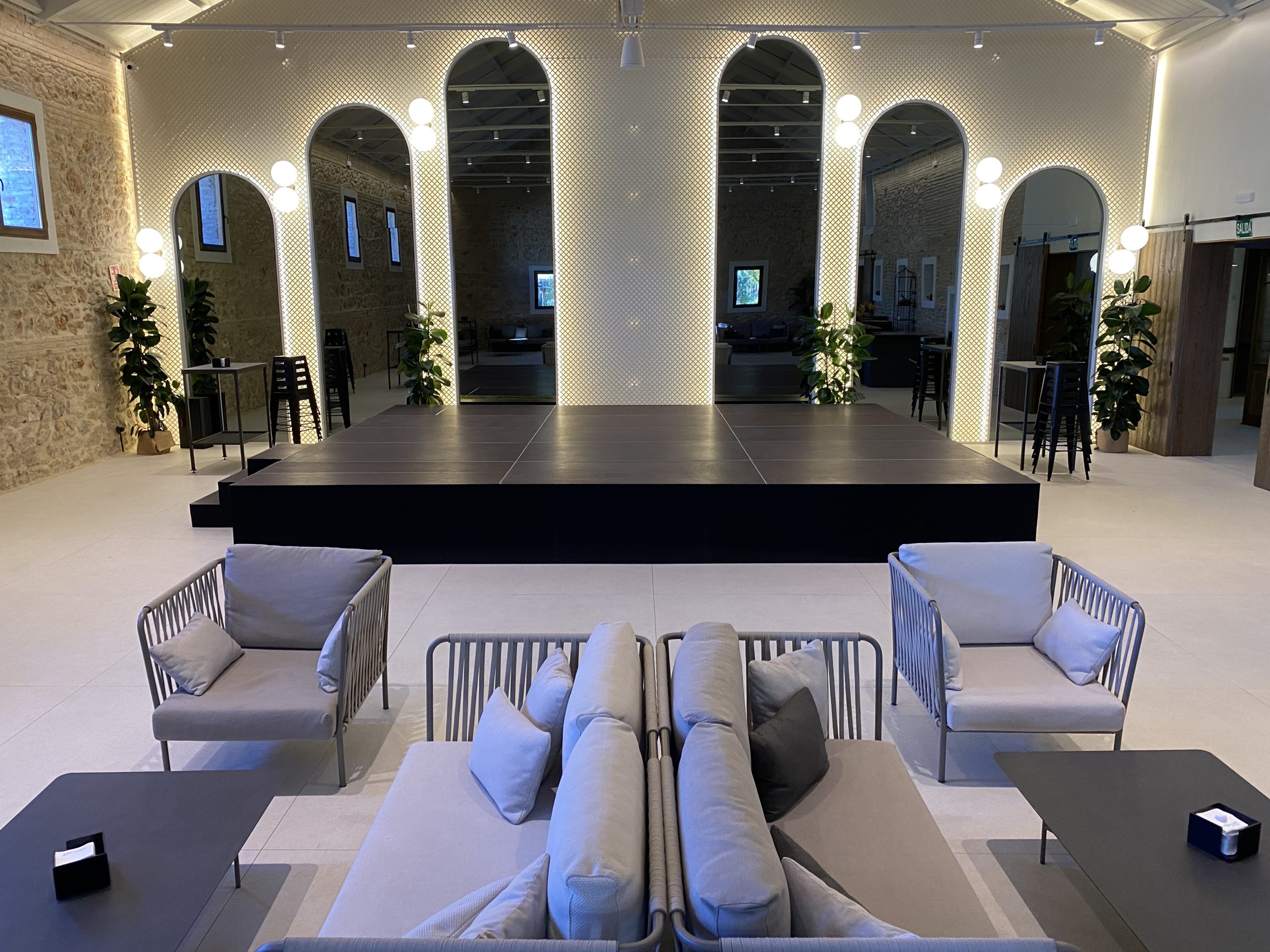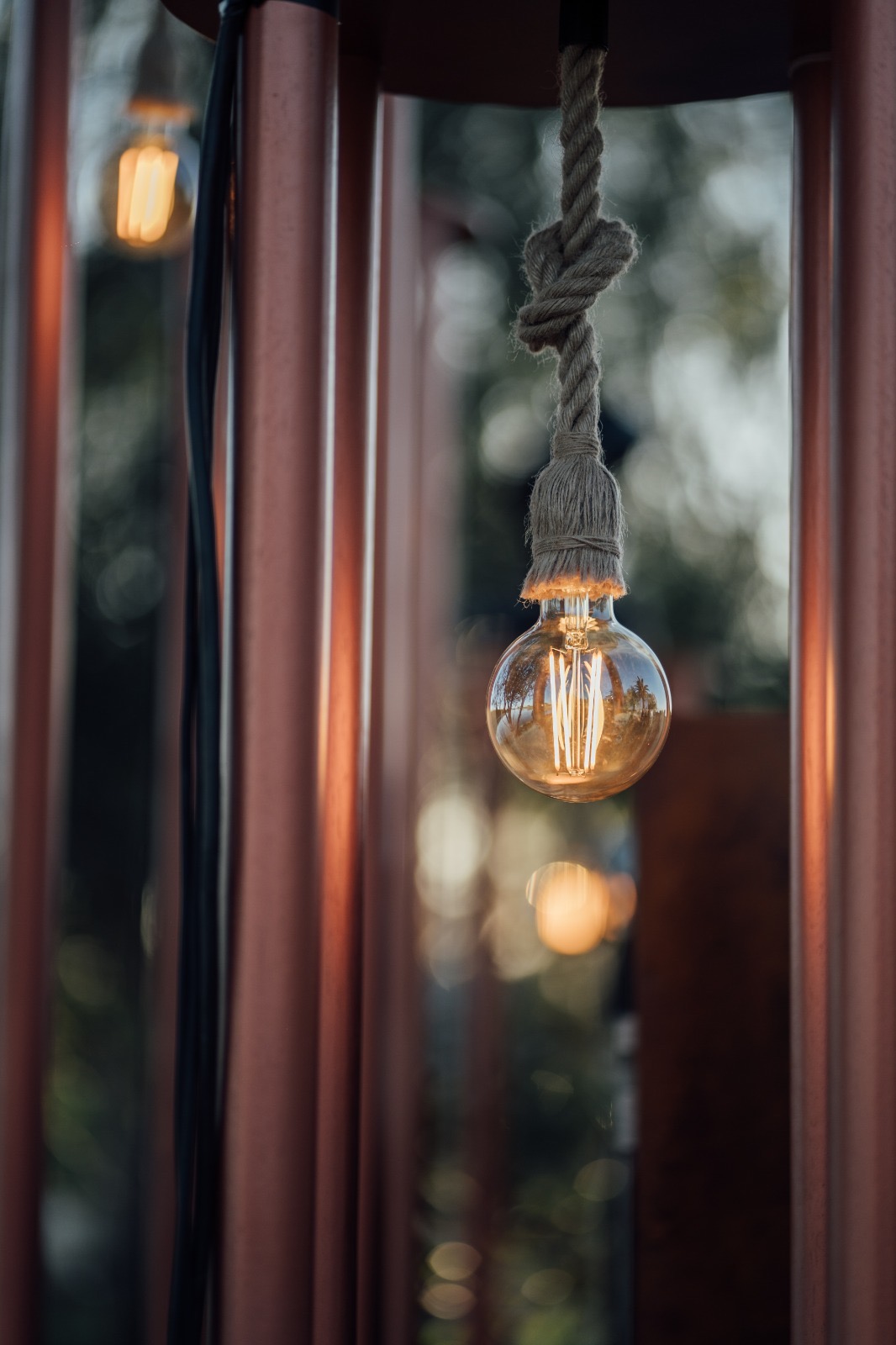 - Hileras de bombillas cálidas con regulador de intensidad.
